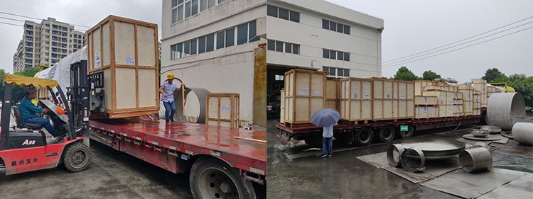2019年5月31日,我司生产部同事正在将一件件的将货物安排装车,这批新设备即将被发往俄罗斯库尔干地区。